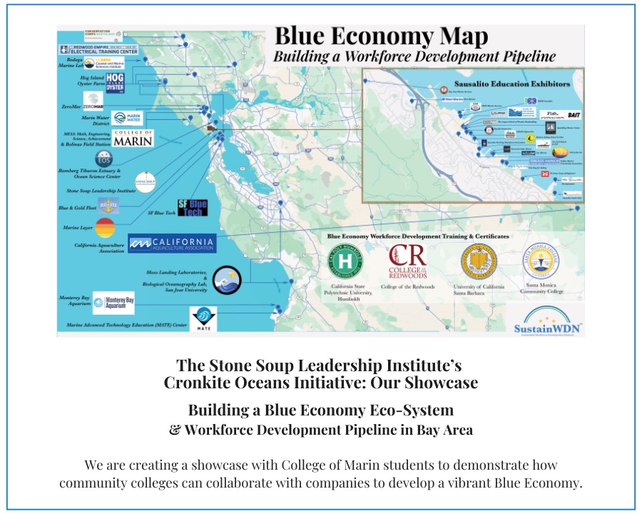 California: At the Institute’s Blue Job Shadow Day 2025 in partnership with the College of Marin we discovered that Blue Economy leaders were struggling to hire, train and house local people for local jobs. It was disconcerting to learn that a 40-year-old company like Hog Island Co. with $35 million in revenues didn’t have access to local workforce training programs. Aquaculture is a booming industry — with $400 billion projected in the US by 2030 — it is one of the fastest growing industries in the Blue Economy. Hog Island could grow – and provide more jobs, if only there were aquaculture certification programs offered at the community college. “Once a leader, California is lagging in the Blue Economy,” says Hog Island’s Co-Founder Terry Sawyer. “We need to learn from other countries like France about how to embrace this incredible opportunity.”