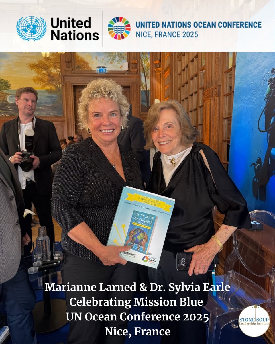 Thanks to Dr. Earle’s groundbreaking work, oceans are finally getting the attention they deserve. In 2014, the Stone Soup Leadership Institute honored her with the Cronkite Ocean Award on Martha’s Vineyard. This year, we presented the Cronkite Ocean Award 2025 to James Ellsmoor at UNOC3 for championing islands on the front lines who are working together to create ocean solutions through Island Innovations.